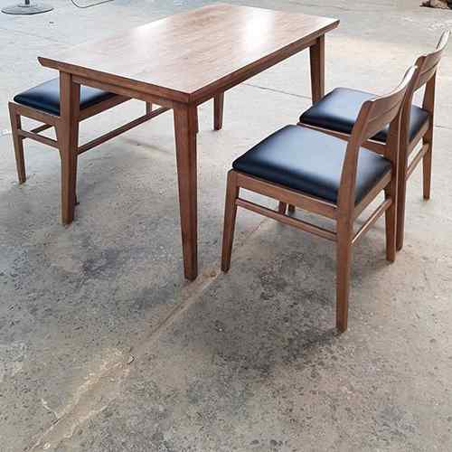Bộ bàn ghế TOMSET-001 được làm từ gỗ Cao su – PU gỗ Óc chó với bộ ghế lưng tựa, tạo nên tư thế ngồi thoải mái