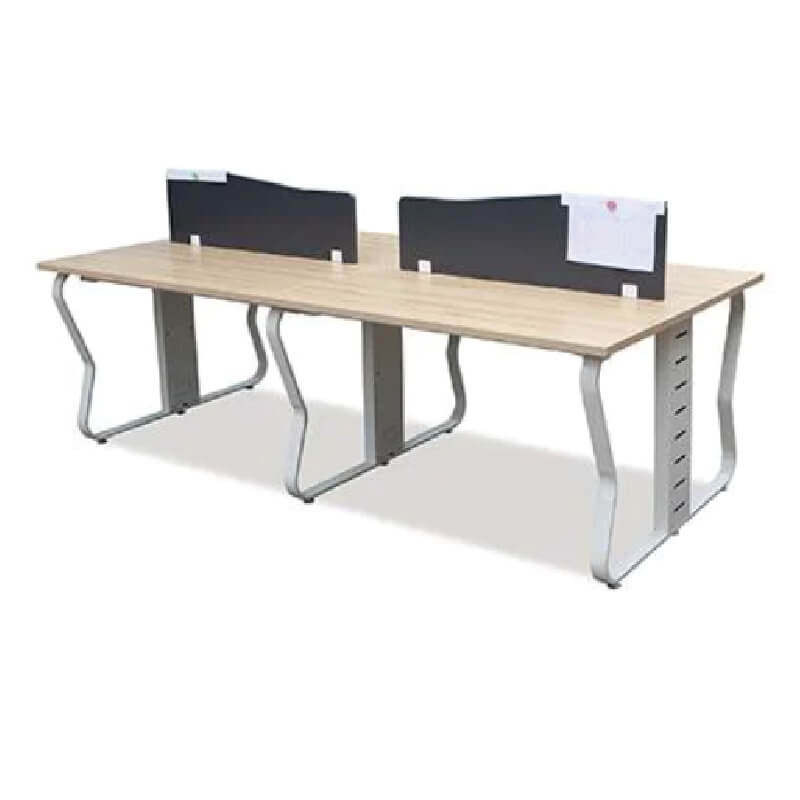 Cụm Bàn Làm Việc 1903B12-4 là bàn làm việc 4 người ngồi, chân sắt hộp 50x16 uống cong, thanh giằng hộp 25x50 được liên kết với nhau bằng khớp nối nhôm, phần sắt sơn tĩnh điện màu kem, chân bàn có tích hợp hộp kỹ thuật. Cụm Bàn Làm Việc 1903B12-4 phần mặt bàn làm từ gỗ MFC phủ melamine dày 25mm sáng bóng.