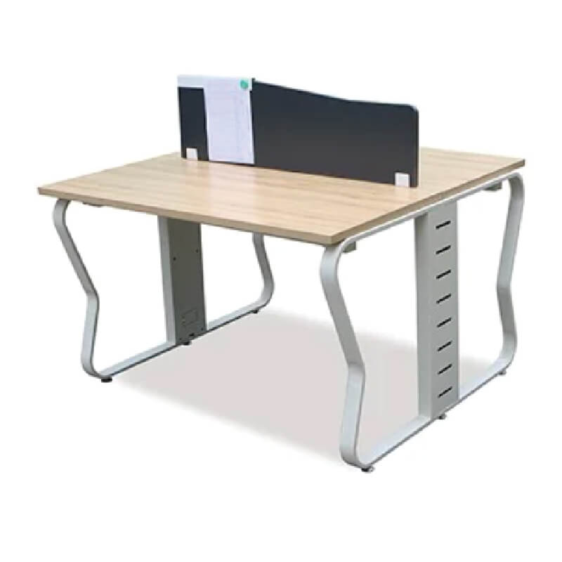 Cụm Bàn Làm Việc 1903B14-2 là bàn làm việc 2 người ngồi, chân sắt hộp 50x16 uống cong, thanh giằng hộp 25x50 được liên kết với nhau bằng khớp nối nhôm, phần sắt sơn tĩnh điện màu kem, chân bàn có tích hợp hộp kỹ thuật. Cụm Bàn Làm Việc 1903B14-2 phần mặt bàn làm từ gỗ MFC phủ melamine dày 25mm sáng bóng.