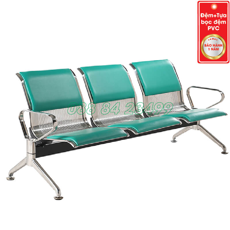 Ghế Băng Chờ Inox 3 chỗ GI-31-06D. Có đệm bọc PVC cao cấp
