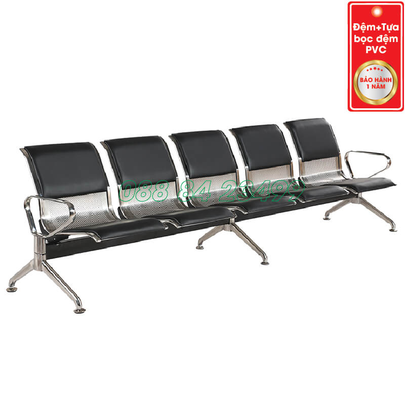 Ghế Băng Chờ Inox 5 chỗ GI-29-06. Có bọc đệm mút PVC cao cấp