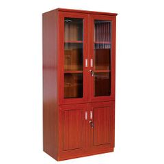 Tủ tài liệu 1 tầng gỗ MDF, phần khoang trên 2 khung kính mở để tài liệu, phần khoang dưới có 2 cánh đặc. Phụ kiện bản lề, cam, liên kết của Hafele