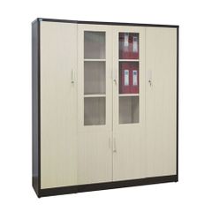 Tủ văn phòng, toàn bộ tủ gỗ được làm bằng gỗ ván MFC, phủ Melamine, thành tủ dày 25mm, và nóc tủ gỗ dày 36mm dùng vân gỗ màu tối, toàn bộ cánh tủ, đợt di động tấm hậu sử dụng gỗ màu vân gỗ sáng (màu H2102, 2931…)