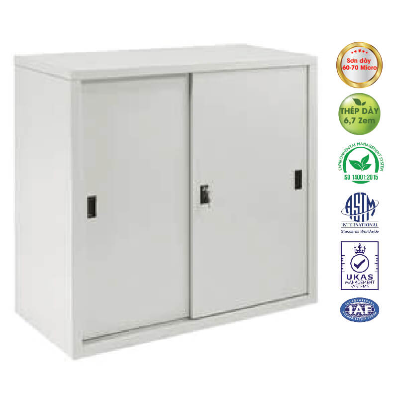 Tủ Sắt Văn Phòng Đựng Tài Liệu, Hồ Sơ TL01 được thiết kế tiện lợi, tối giản, gọn gàng dùng làm tủ đựng tài liệu, sách báo. Là sản phẩm có kết cấu vững chắc, có 2 cánh sắt trượt, 1 khoang, 2 giá đỡ chia thành 3 ngăn. Nước sơn màu trắng sữa đậm sang trọng kết hợp với chất liệu thép dày 6-7 Zem, độ dày sơn tĩnh điện 60-70 µc làm cho Tủ Sắt Văn Phòng có tuổi thọ hơn 10 năm sử dụng.